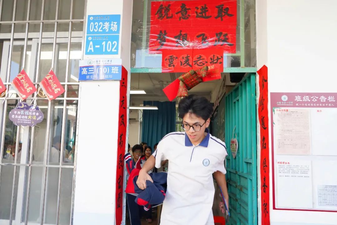 开考前,同学们信心满满“跃龙门”